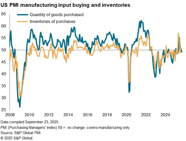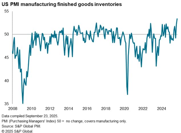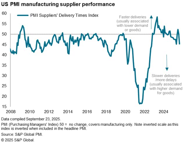More supply chain delays were reported, however, often linked to tariffs and import availability issues. September's lengthening of delivery times was the second-largest recorded for nearly three years, exceeded only by that recorded in May after April's tariff announcements had disrupted shipments.