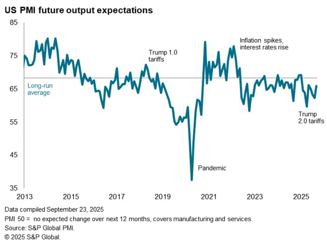 Looking ahead, companies' expectations about output in the year ahead improved to a four-month high in September, yet remained below the survey's long-run averages in both manufacturing and services.