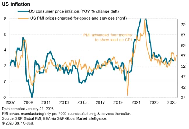 Input cost inflation remained elevated in January, though moderated from December's seven-month high to sit at the weakest since last April. The moderation reflected a cooling of input cost inflation in the service sector, as manufacturing input prices rose at the fastest pace since last September, once again widely blamed on tariffs.