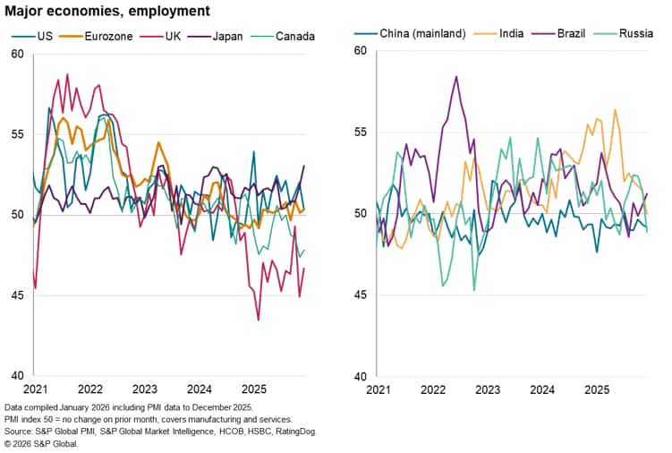 In recent months, the PMI surveys have shown encouragingly resilient global economic growth, despite the heightened geopolitical uncertainty seen over 2025. However, December's data showed signs of cracks appearing, leading to a stalling of the job market.