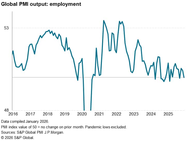 {"name":"share","enabled":true,"desc":"<strong>Share</strong>","mobdesc":"Share","options":[ {"name":"facebook","url":"https://www.facebook.com/sharer.php?u=http%3a%2f%2fprod.azure.ihsmarkit.com%2fmarketintelligence%2fen%2fmi%2fresearch-analysis%2fglobal-pmi-signals-stalled-worldwide-employment-amid-low-business-confidence-Jan26.html","enabled":true},{"name":"twitter","url":"https://twitter.com/intent/tweet?url=http%3a%2f%2fprod.azure.ihsmarkit.com%2fmarketintelligence%2fen%2fmi%2fresearch-analysis%2fglobal-pmi-signals-stalled-worldwide-employment-amid-low-business-confidence-Jan26.html&text=Global+PMI+signals+stalled+worldwide+employment+amid+low+business+confidence+%7c+S%26P+Global+","enabled":true},{"name":"linkedin","url":"https://www.linkedin.com/sharing/share-offsite/?url=http%3a%2f%2fprod.azure.ihsmarkit.com%2fmarketintelligence%2fen%2fmi%2fresearch-analysis%2fglobal-pmi-signals-stalled-worldwide-employment-amid-low-business-confidence-Jan26.html","enabled":true},{"name":"email","url":"?subject=Global PMI signals stalled worldwide employment amid low business confidence | S&P Global &body=http%3a%2f%2fprod.azure.ihsmarkit.com%2fmarketintelligence%2fen%2fmi%2fresearch-analysis%2fglobal-pmi-signals-stalled-worldwide-employment-amid-low-business-confidence-Jan26.html","enabled":true},{"name":"whatsapp","url":"https://api.whatsapp.com/send?text=Global+PMI+signals+stalled+worldwide+employment+amid+low+business+confidence+%7c+S%26P+Global+ http%3a%2f%2fprod.azure.ihsmarkit.com%2fmarketintelligence%2fen%2fmi%2fresearch-analysis%2fglobal-pmi-signals-stalled-worldwide-employment-amid-low-business-confidence-Jan26.html","enabled":true}]}, {"name":"rtt","enabled":true,"mobdesc":"Top"}