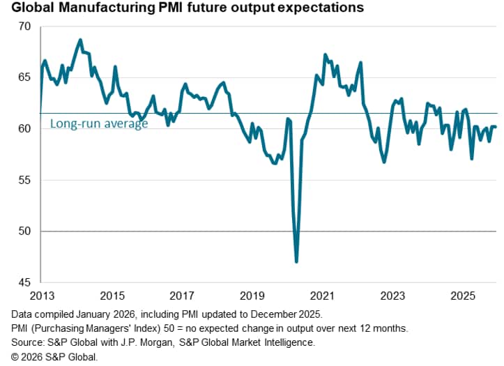 Sector data from December indicated that manufacturing recorded a steeper fall in trade activity at the end of the fourth quarter. Posting below the 50.0 no-change mark, the seasonally adjusted manufacturing PMI New Export Orders Index indicated a ninth consecutive monthly reduction in export demand for goods. Although modest, the rate at which goods export orders lowered across the globe in December was sharper than the 2025 average, reflecting subdued trade conditions at the end of the year.