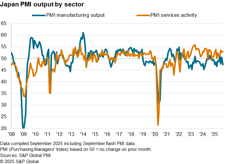 Covering 10-19 September, the flash survey data collection period partially coincided with the announcement of new tariff reductions on imports from Japan to the US, which was later implemented on September 16. However, qualitative data from survey respondents showed little changes thus far, with subdued manufacturing sector business confidence further reflecting cautiousness among firms.