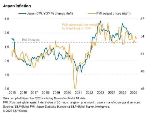 Yen weakness meanwhile contributed to greater cost pressures for Japanese companies, which led to another solid increase in output charges. The elevated inflation, coupled with stronger output growth in November, therefore helps support calls for the Bank of Japan to raise rates at the end of the year, countering some weak signals on the economy from official data.