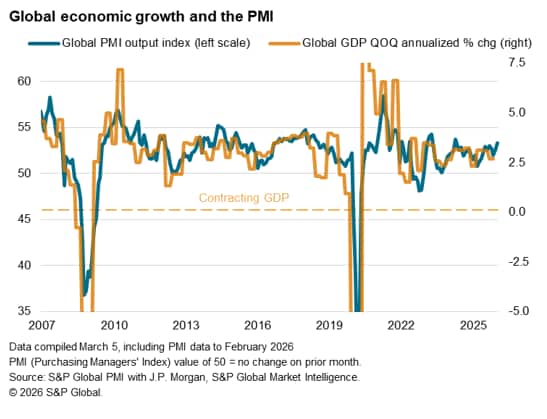 The following analysis describes the economic landscape through the lens of PMI surveys compiled by S&P Global in over 40 economies. The content reflects the PMI team's analysis of business metrics collected from around 30,000 companies and does not necessarily reflect the views of S&P Global Market Intelligence's economic forecasters or S&P Global Ratings.