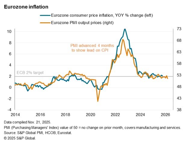 At its current level, the PMI's selling price gauge is broadly consistent with the ECB's inflation target of 2%.