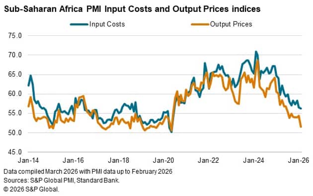 The recent disinflationary trends seen in official data on consumer prices and the PMI survey data, as well as subsequent reductions in interest rates across a number of economies, may be reversed in the months ahead depending on the length and severity of the war in the Middle East and any associated impact on oil and gas supply. PMI data and the comments from panel members will help to illustrate any impacts on firms in sub-Saharan Africa with the release of March data in early-April.