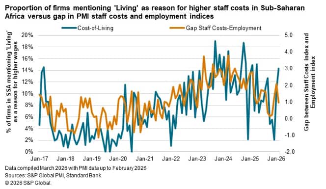 Sub-Saharan Africa PMI surveys show cost-of-living payments driving staff costs higher