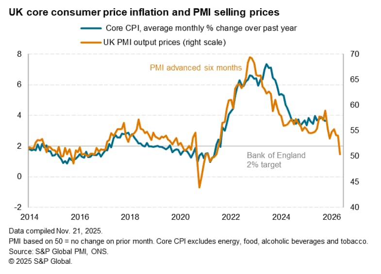 At its current level, the PMI selling price index is consistent with consumer price inflation broadly meeting the Bank of England's 2% target.