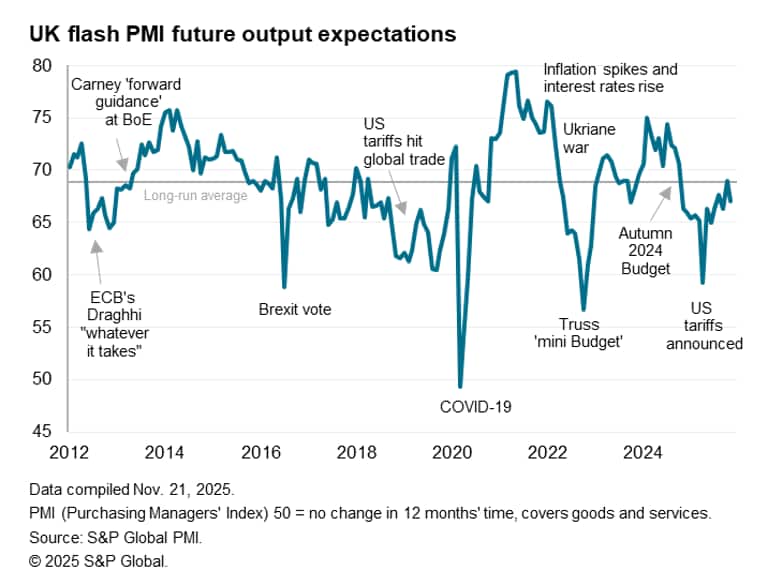 Some of this malaise has been blamed on paused spending decisions ahead of the Autumn Budget, but there's a real chance this pause may turn into a downturn. The drop in confidence about the year ahead reflects a growing conviction that business conditions will deteriorate further in the coming months, largely linked to speculation that further demand-dampening measures will be introduced in the Budget.