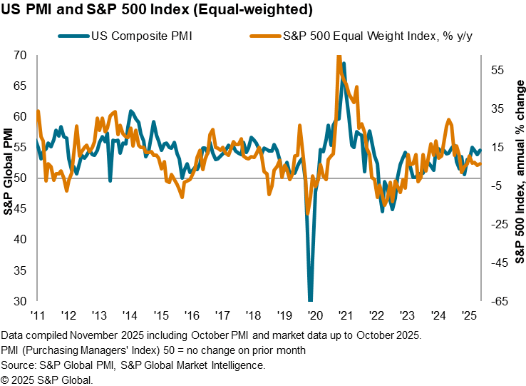 A comparison of the S&P 500 index and the US PMI revealed that the divergence in trend further widened in October, thereby reinforcing these concerns over elevated prices. This was despite a period of market adjustment midway through October.