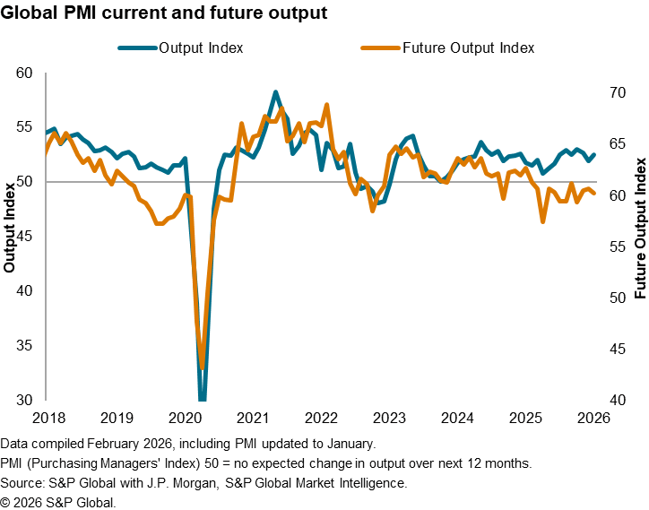 Given the high correlation between fund managers' perception of the global macroeconomic environment and the J.P. Morgan Global Composite PMI Output Index, the latest sentiment data from U.S. equity investors suggest that market participants expect global growth to pick up pace from the improvement we have already seen in the opening month of the year. That said, there is nevertheless a noticeable gap that has opened up between the IMI's sentiment data regarding the global macroeconomic environment and actual output. Perhaps more interesting, this disparity is also present between the PMI's actual and future output gauges, albeit in reverse, indicating that businesses themselves are not optimistic that recent output gains will persist.
