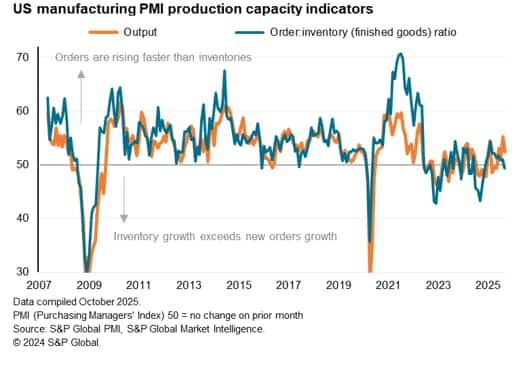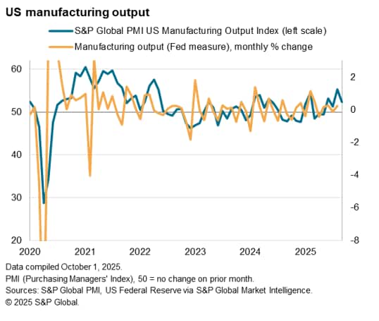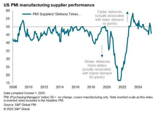A growing uncertainty, however, relates to supply chains, with September seeing an increase in tariff-related supplier delays, which threaten to curb production and push up prices if these delays persist or intensify.