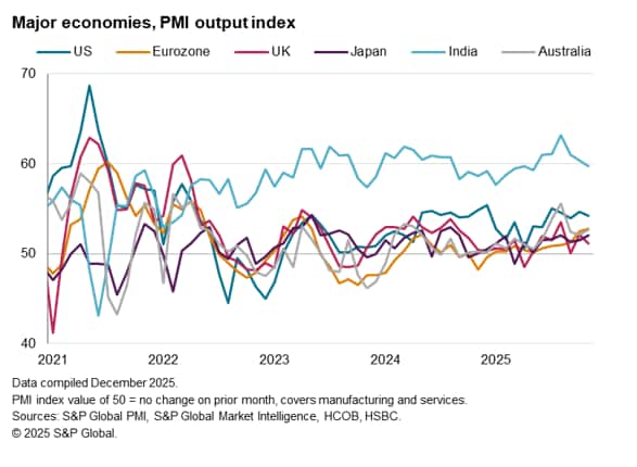 Flash PMI surveys for December will provide insights into key economic indicators for the US, eurozone, UK, Japan, India and Australia. While the US continued to lead the major developed markets during November, and India sustained its lead in the emerging markets, both saw rates of expansion moderate. Growth meanwhile accelerated in the eurozone and Australia but slowed amid policy-related uncertainty in the UK. Read our global PMI wrap up for November here.